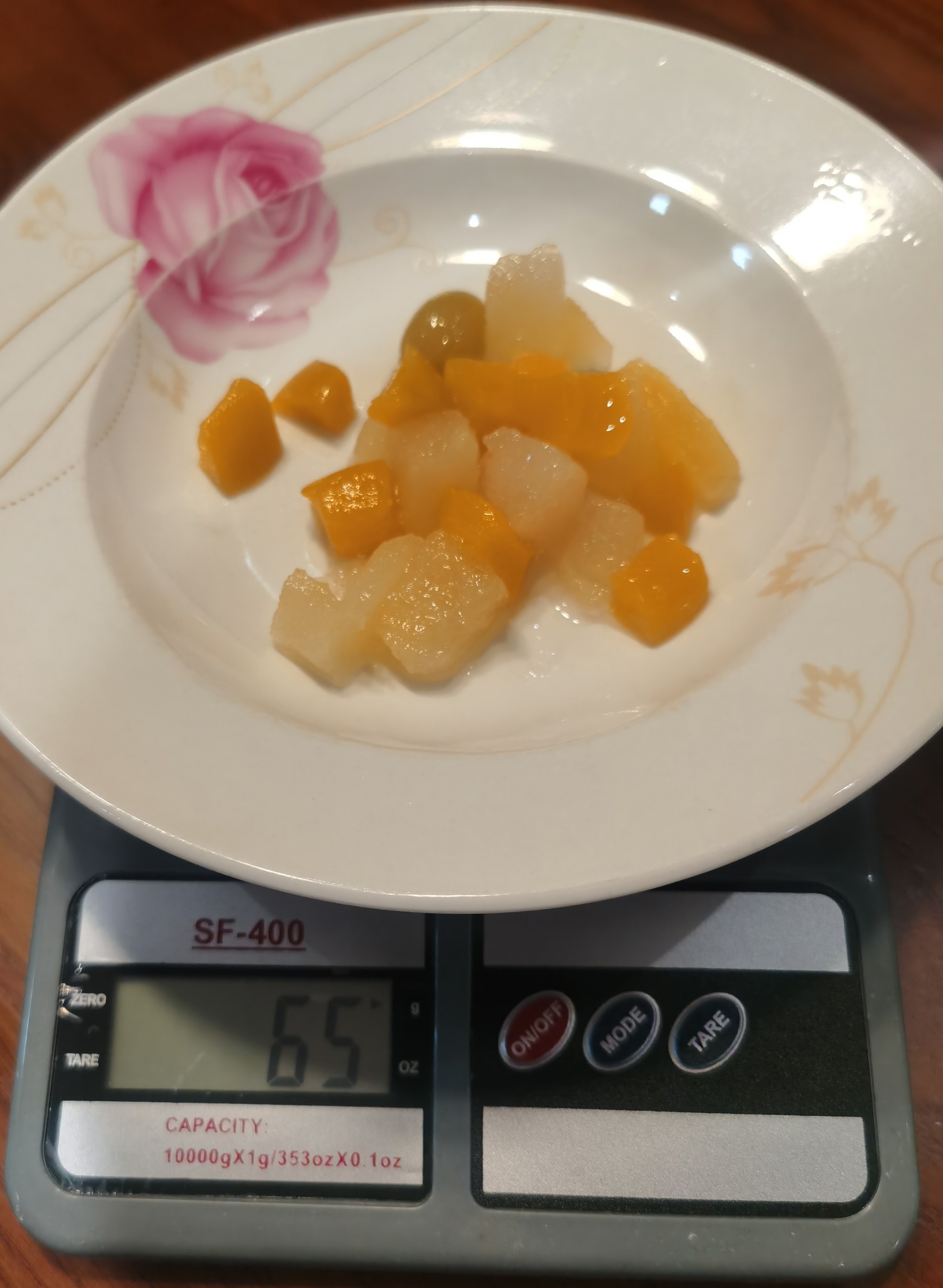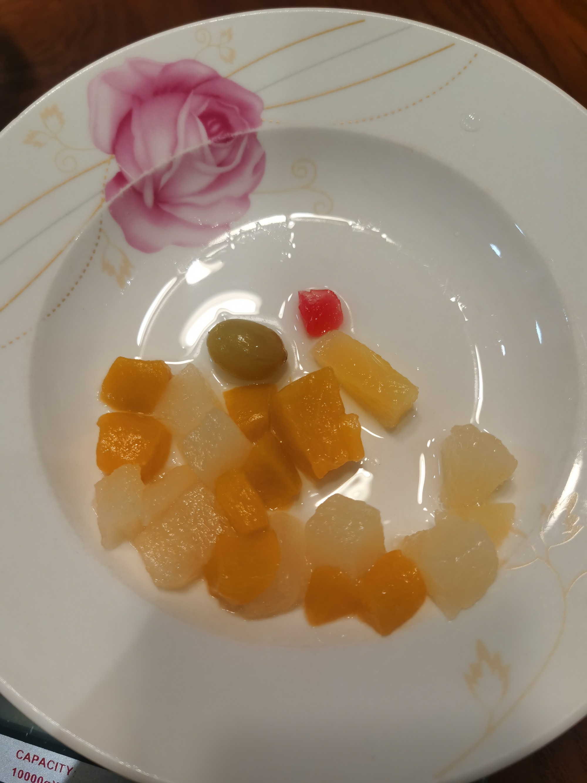 Ingredients: yellow peach,pear,pineapple,grape,cherry(according to customer required)